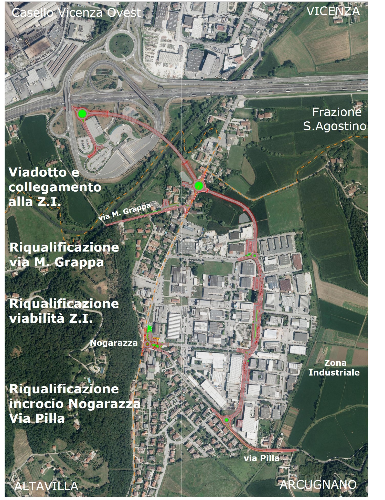 L’opera è finalizzata a collegare la frazione residenziale/industriale di Sant’Agostino, situata nei Comuni di Arcugnano ed Altavilla Vicentina, ed il casello di Vicenza Ovest della A4, per migliorare l’accesso all’autostrada, drenare quote di traffico soprattutto pesante dalla viabilità urbana e fluidificare la mobilità nel nodo di Vicenza Ovest.